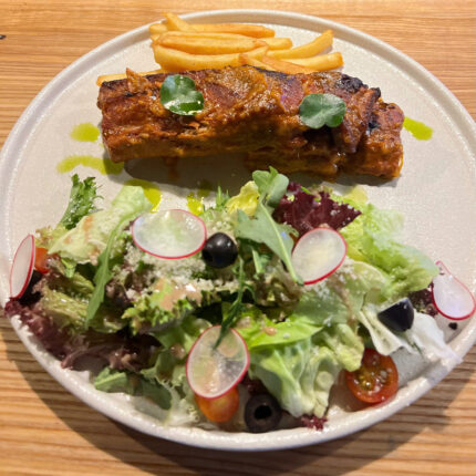 Sườn Heo nướng xốt BBQ ăn kèm khoai tây chiên