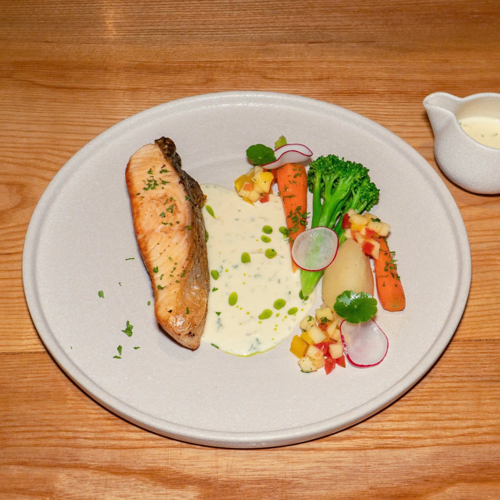 Rib eye cream sauce mâche mix