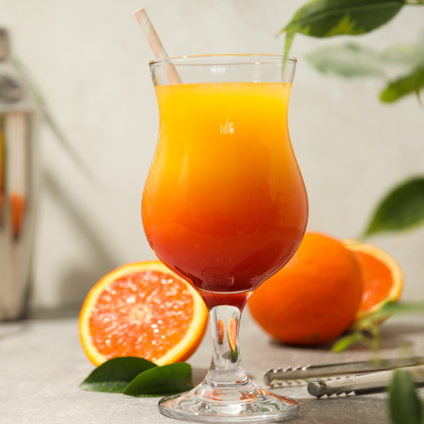 Rượu rum Bacardi nhẹ, curacao xanh, malibu, nước cam, nước cốt chanh, grenadine
