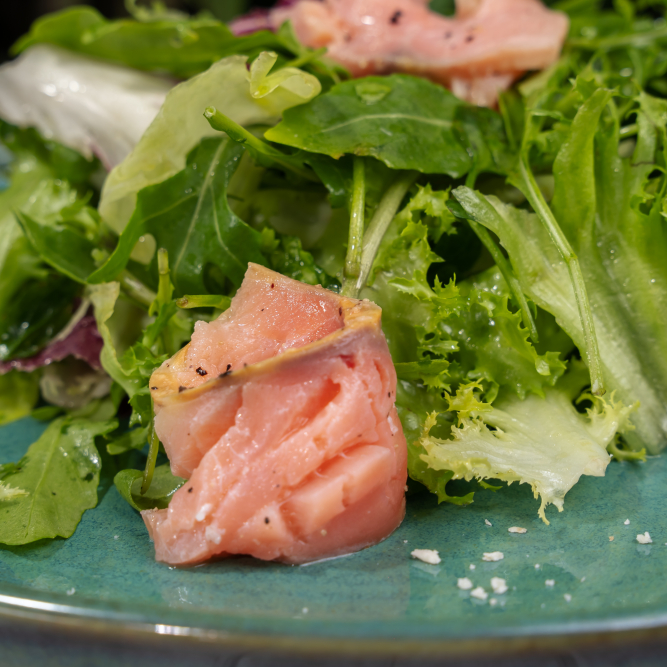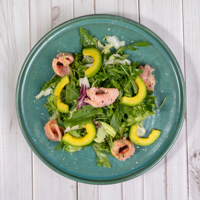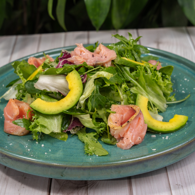 Home Salad Salmon, Avocado Salad with Ricotta Cheese